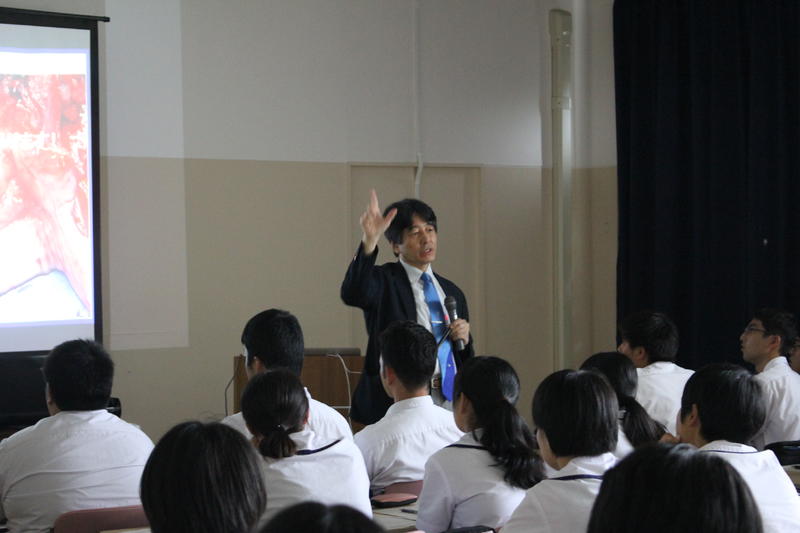 性と生の大切さ、性に関する癌などの諸問題や正しい知識について興味深い内容となっていました。卵管から卵子が排卵する様子など貴重な映像をいくつか見せていただきました。生徒たちからは「帝王切開の出産シーンを見ることができて良かった」、「命を繋ぎ、未来に責任を持ちたい」、「生まれてきたことは奇跡だと実感し、大事にしようと思った」などたくさんの感想が出てきました。記憶に残る講演会でとても有意義な時間となりました。片渕様ありがとうございました。