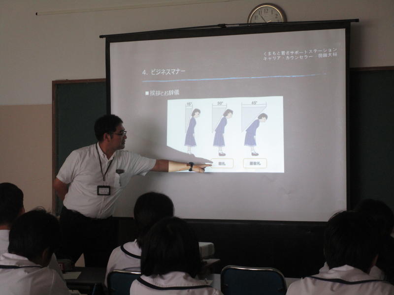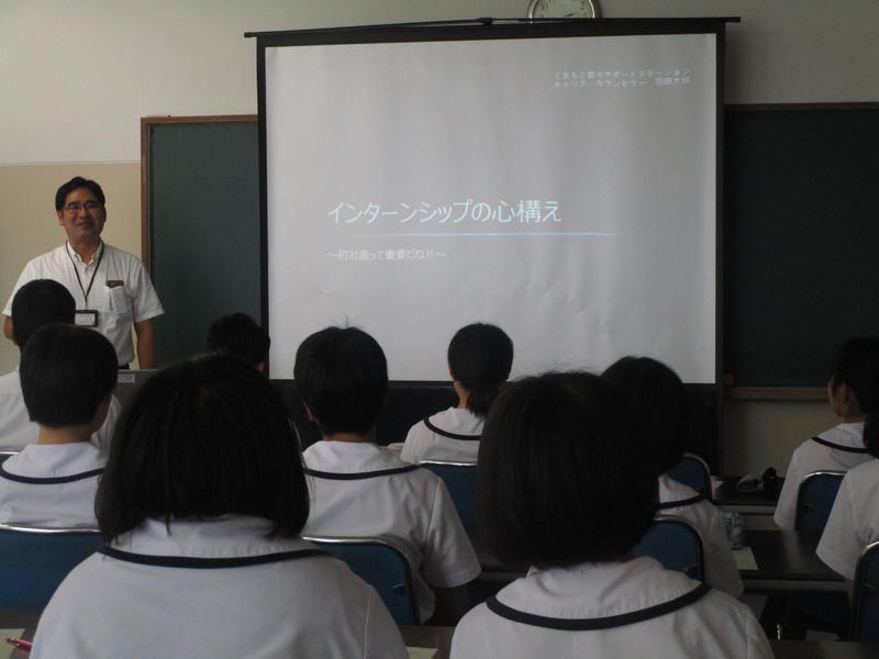 7月16日(火)、NPO法人おーさぁ くまもと若者サポートステーション 前田様を講師としてお招きし、事前指導を行いました。