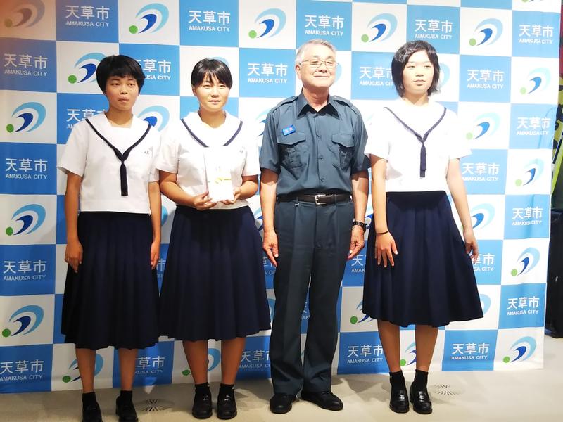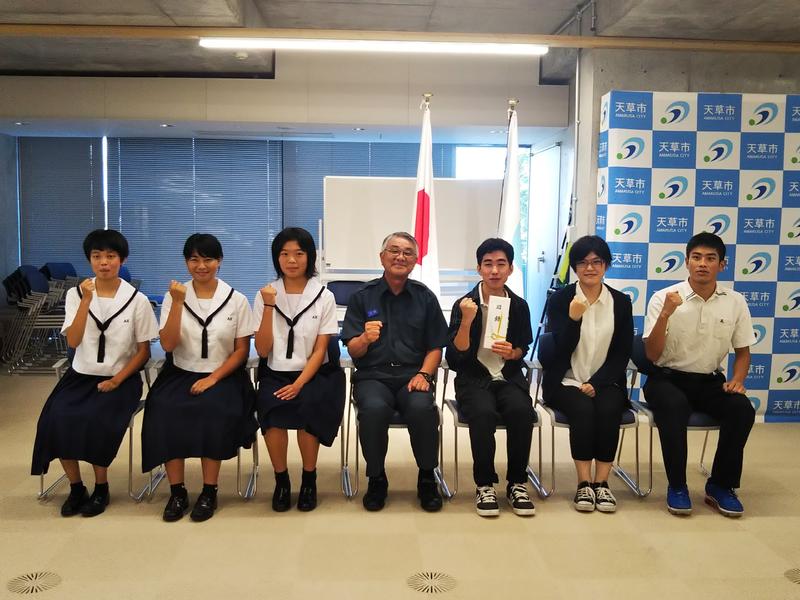 8月6日午後、インターハイに出場する天草高校全日制生徒、全国定時制通信制高等学校体育大会に出場する定時制生徒とともに、倉岳校から生徒3人が中村天草市長を表敬訪問し、大会出場報告を行いました。