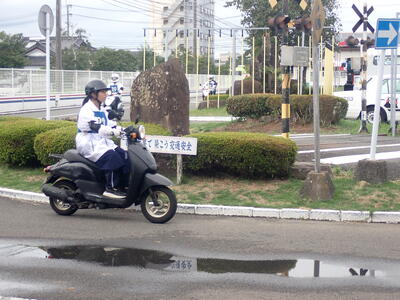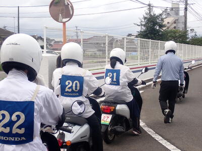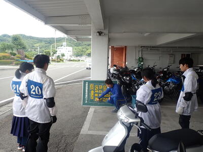 10月3日(木)、考査最終日の午後、原付免許取得者を対象に安全運転講習会が開かれました。これは、年2回、春と秋に天草自動車学校様に御協力いただいて開催しているものです。実技指導をとおして正しい運転技能を確認し、交通安全意識の向上を図り、事故の防止につなげます。4名の生徒たちは、懇切丁寧にご指導していただき、改めて交通安全への意識を高めていました。
