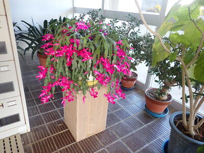 玄関内では、シャコバサボテンがいつの間にか満開になっていました!