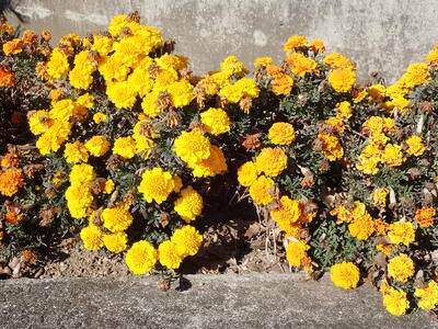 加えて、マリーゴールドも頑張っています。咲きおわった花もありますが、黄色、橙色で明るく微笑んでくれています。