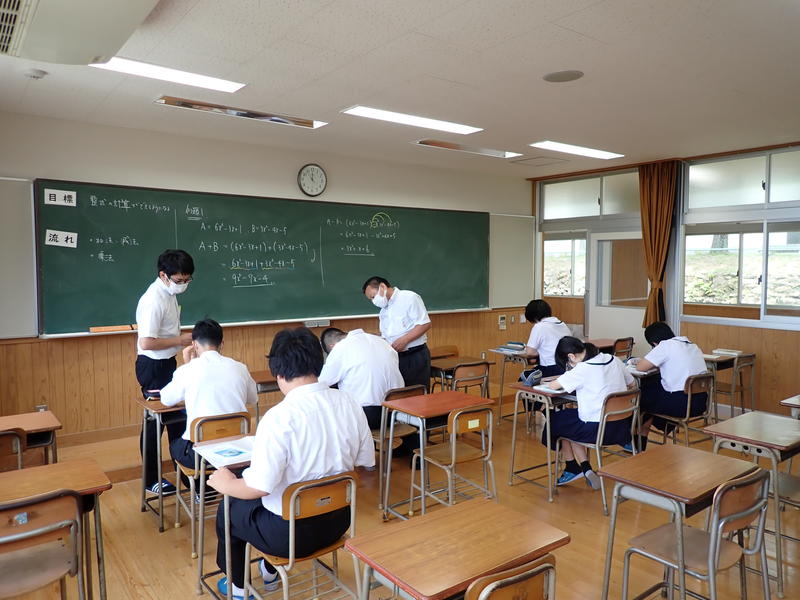 倉岳校では、数学と英語の時間は習熟度別に分かれ、基礎クラスと応用クラスで授業が行われます。数学の応用クラスでは基礎的な公式の使い方を習得した上で、少し難易度が高い問題にも挑戦します。難しい問題でも先生の丁寧な解説を聞くことで理解することができます。また、英語の応用クラスでは予習をしっかりと行った上で、たくさんの問題を解くことができます。間違えた問題に関しては先生がとても分かりやすく解説してくださいます。クラスが分かれることで人数は少なくなりますが、先生に質問しやすいことは魅力的です。みなさんも倉岳校で一緒に学力を伸ばしてみませんか。 |