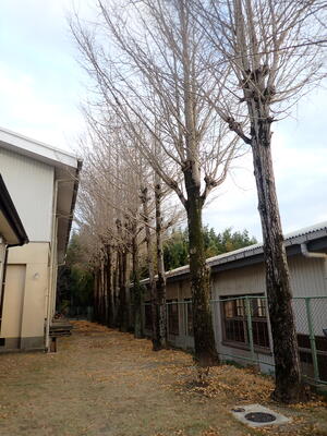 また、24日の大掃除の際には、生徒の皆が葉っぱを掃くのに一苦労だったイチョウの木。秋の景色からうって変わってすっかり葉をおとしています。ものすごい量のイチョウの葉。皆汗をかきながら、できるだけ寄せて運んでおこうと、必死に掃除していました!校舎内では教室のワックスがけ、窓ふきなど頑張っていました。おつかれでした!!