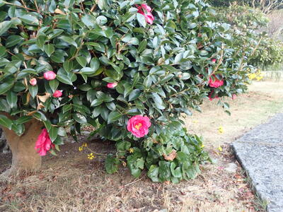 咲いているものは、ツワブキやサザンカ、コスモス(長く、まだ立派に咲いています!)バラ(こちらも長いですねー。繰り返し咲いています!)、ヤツデなどがあります。