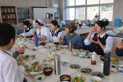 クレープの生地を薄くきれいに焼くのが難しかったですが、味はバッチリ! みんなでおいしくいただきました。夕飯前にたくさん食べてしまったので、ご飯が入らなかった生徒もいたかもしれません。(申し訳ありません)3学期は、あと一回、調理実習を行いたいと思います。