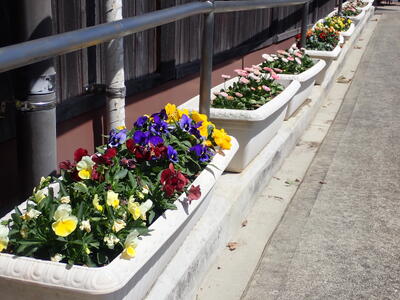 春が来たなあ、と感じます。玄関では、卒業式の日のステージ上の花も元気です。卒業生は、新たな出発の準備をしているでしょうか……