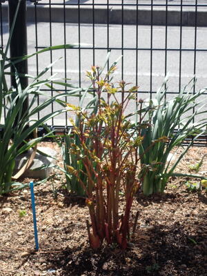 次は、シャクヤクが新しい芽を伸ばしているところです。他にも、ウメが長さ1cmほどの小さな実をいくつか付けていたり、ツツジの中心部で蕾のようなものが膨らんできていたりしています!