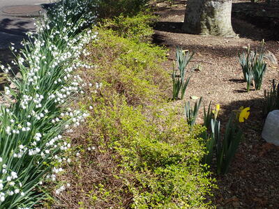 そして、知らない間にやっぱり花、増えています!次は、オウバイ(黄梅)という花だそうで、原産地の中国では「迎春花」とも呼ばれるようです。