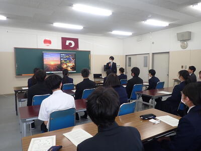 最後に、代表生徒が謝辞を述べ、講演会を終了しました。中本様、お忙しい中、倉校生のためにお時間を頂きありがとうございました!今後ともよろしくお願いします!