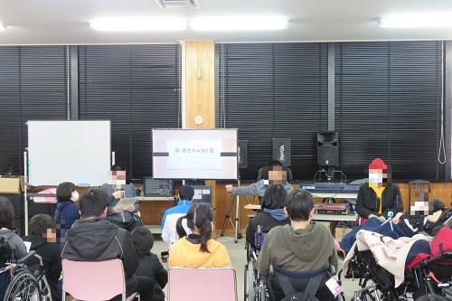 2月8日(金)に高等部の1年間のハートフルシップ活動の報告会を開催しました。クラスごとにコースター、竹細工、キーホルダーを作って来院された方やお医者さんや看護師さん、他学部の生徒児童へプレゼントをしたり、笑顔になってもらうために清掃活動をしたり、たくさんの方を招いて感謝祭やイベントを開催したりしました。各クラスの活動を振り返り発表を行うことで成果を再認識し、ボランティア活動に対する自信を深めることができました。