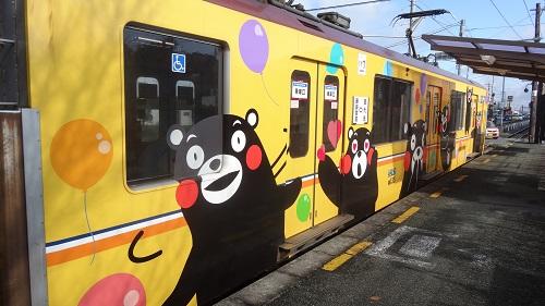 10月25日(金)に高等部一般学級1年生は校外学習に出かけました。熊本電鉄の電車に乗って出発しましたが、運良くくまモン電車でした。