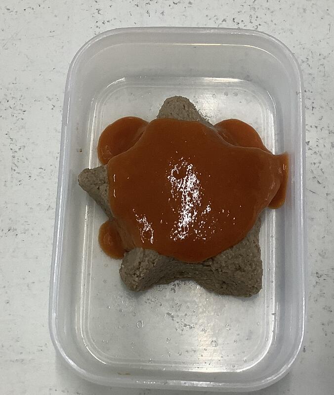 また、調理員さんの一工夫で、「星のハンバーグ」を極刻み食として加工した後に、再度星形に成形し直していただきました☆