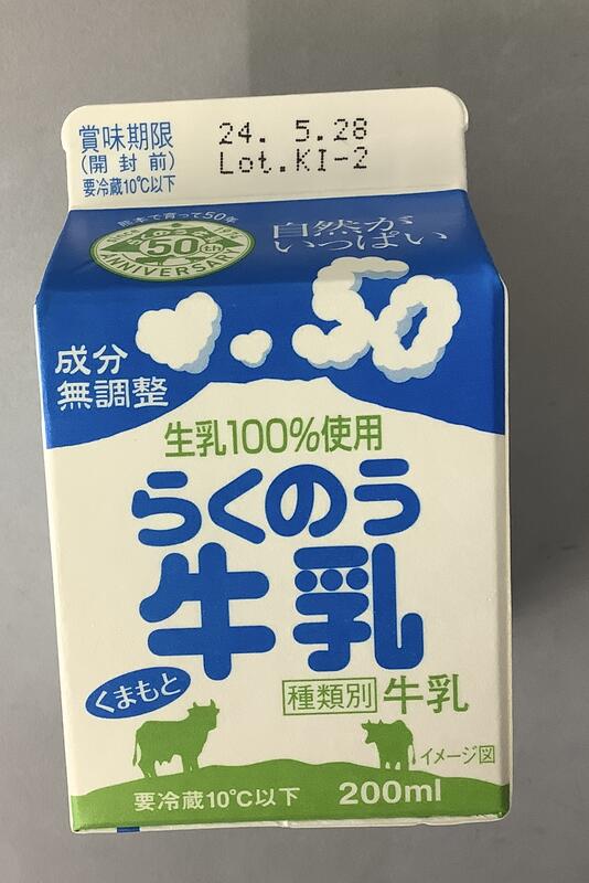 また、2つの写真の牛乳を見比べてみてください。実は、らくのうマザーズが誕生して50周年ということで特別パッケージ品です☆彡雲の形がかわいらしいですね。