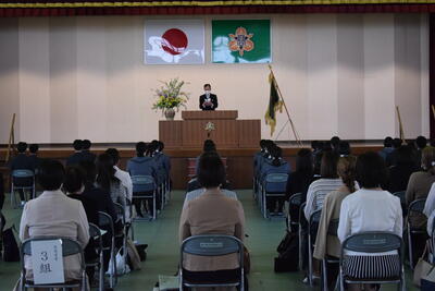 の話しがありました。また、本校の校歌もCDで聴きました。