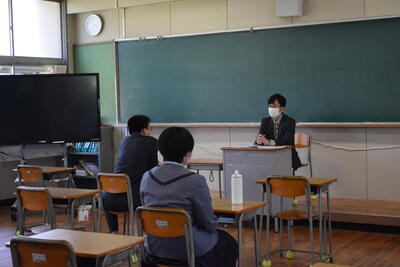 ラーニングルームに集合し、学年主任・進路指導部・教務部・生徒指導部からの話がありました。