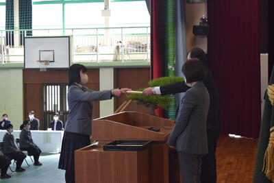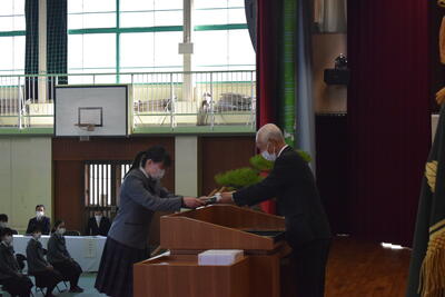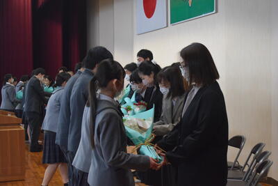2月28日(火)、表彰式・卒業式予行・同窓会入会式がありました。