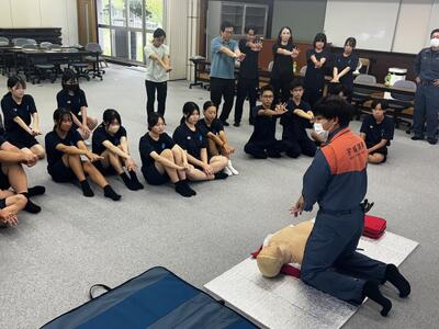 普通科1・2年生が「宇城防災」の授業で、宇城広域連合南消防署の署長をはじめ隊員の方々を講師に迎え、防災講話と救急救命講習を受けました生徒たちは初めて実施する胸骨圧迫に緊張しながらも、一生懸命取り組んでいました。簡単そうに見えて、実際には難しいことがよく分かったようです