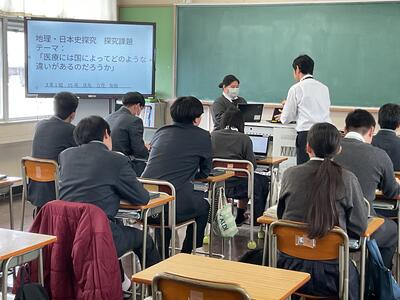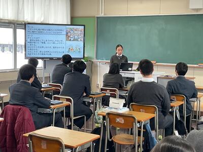 普通科3年生の「日本史」と「地理探究」の学習発表会が行われました発表会では、生徒たちが調べ学習の成果を発表