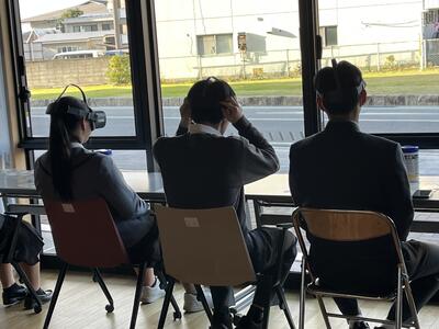 午後は、熊本県防災センターにて、過去に日本で起こった災害についての講義を受けました。座学で知識を深めるだけでなく、水害や地震のVR体験も行い、体験的な学習となりました!