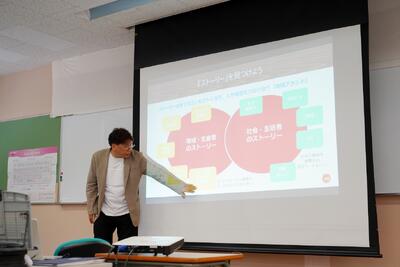 2年生の「商品開発と流通」の授業で、宇城市の”お土産”に関する学習を 株式会社K‘sソリューションズ 代表取締役 松﨑様 を講師としてお招きし実施されました鉛筆また、協力者として 株式会社 談 フォトグラファー・プランナー浦上様、宇城市役所 商工観光課 課長補佐 大嶋様、主事 生田様 にご来校いただきましたグループ