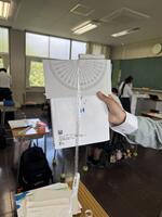 2年情報処理科「数学」の授業で校舎の高さを測定ピース今回は三角関数の学習の一環として、実際に角度を測定し、校舎の高さを計算する活動に取り組みました。理論だけでなく、実際の建物を対象に計算することで、数学の学びを実感することができましたにっこり