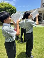 2年生の科学と人間生活(理科)の授業で、スライムを作りました!スライムは柔らかく伸びる性質を持つため、ストローで空気を吹き込み風船のようにふくらませることができますイベント丸く膨らむ様子に生徒たちは楽しみながら、物質の性質について学びました了解この後、さらに薬品を加え、性質が変化することも体験しました鉛筆