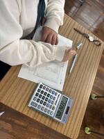 情報処理科では、1年生のうちからたくさんの専門教科を学びます会議・研修今回はその中の「ビジネス基礎」の授業について紹介します。「ビジネス基礎」は、名前の通りビジネスの基本を学ぶ科目です。この日は電卓の使い方の練習をしていました。扱う数字の桁がとても大きくて、びっくりしました驚く・ビックリ
