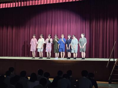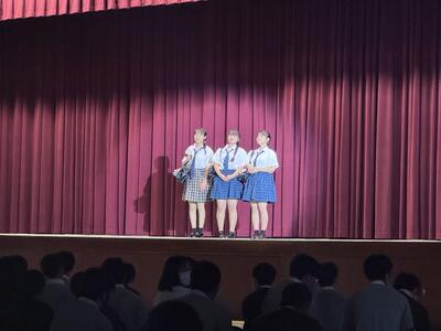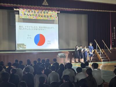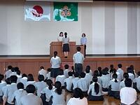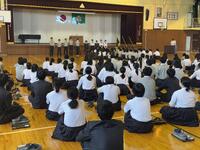 壇上には代表者が登壇し、全校生徒から温かい拍手が送られました
