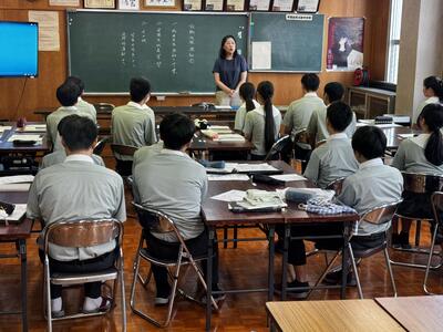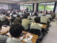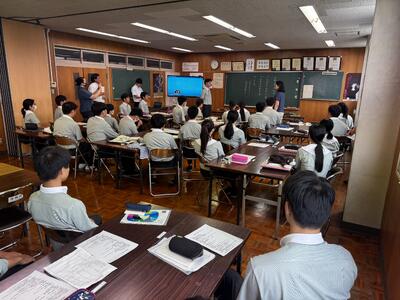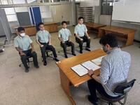 8月22日に、外部講師をお招きして就職面接指導を実施しました。宇城市の企業の方々6人にご来校いただき、模擬面接を中心とした実践的な指導を行っていただきました。当日は、就職活動を控えた3年生が参加し、個別面接・集団面接の模擬体験を行いました。講師の方からは、第一印象の重要性や受け答えのポイント、身だしなみや姿勢といった基本的なマナーから、志望動機の伝え方など、実践に即した丁寧なアドバイスをいただきました。