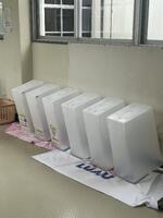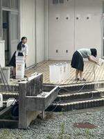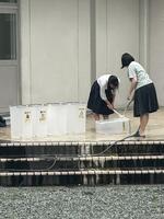 美化委員によるゴミ箱清掃をしました。学校の衛生環境を整えるため洗剤をつけ、たわし等で丁寧に洗います。