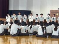 その後、生徒同士で大きな声で挨拶の練習を行い、本番に向けて意識を高めることができました
