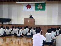 また、始業式では新任の井口校長先生から学校の教育目標としている「生徒の個性を尊重し、伸ばし、一人一人の夢の実現」を目指してほしいとお話がありました