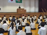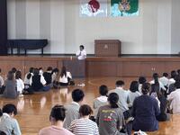 井口校長先生から激励をいただき、職場での挨拶の大切さをお教えていただきました。2学年全員で気持ちを引き締め明日からの「インターンシップ」への意欲を高めました
