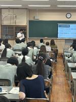 1年生と保護者を対象に、キャリアサポーターの坂口先生による進路学習会を行い、生徒たちは将来について考える貴重な時間となりました 続いて修学旅行説明会では、旅行会社から、旅行の日程