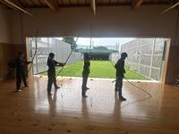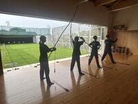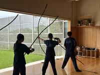 松高の弓道場は、熊本地震の後に全面的に建て直され、とてもきれいな環境で活動することができますこの日は工事の関係で停電していましたが、みんな集中して「的」に向かい、真剣に部活動に取り組んでいました