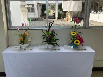 礼法部は国際交流会館にて華道の展示部門で参加活け込みが終わったあと、サイエンス部の発表も見に来ていました