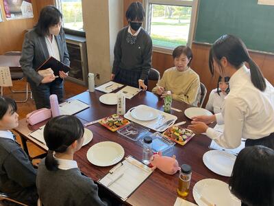 の試食会が行われました。松高生が考えたレシピをふんだんに取り入れていただいている素敵なお弁当に仕上がっていました。