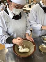 「五平餅」をつくりました松高の家政科では3年生になったら、被服と食物を選択し専門性を高めることができます