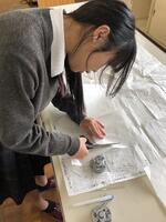 まずは、この大きな紙に型を作ることから始まります今年はどんなドレスができあがるのか「松高フェスタ」が楽しみですね