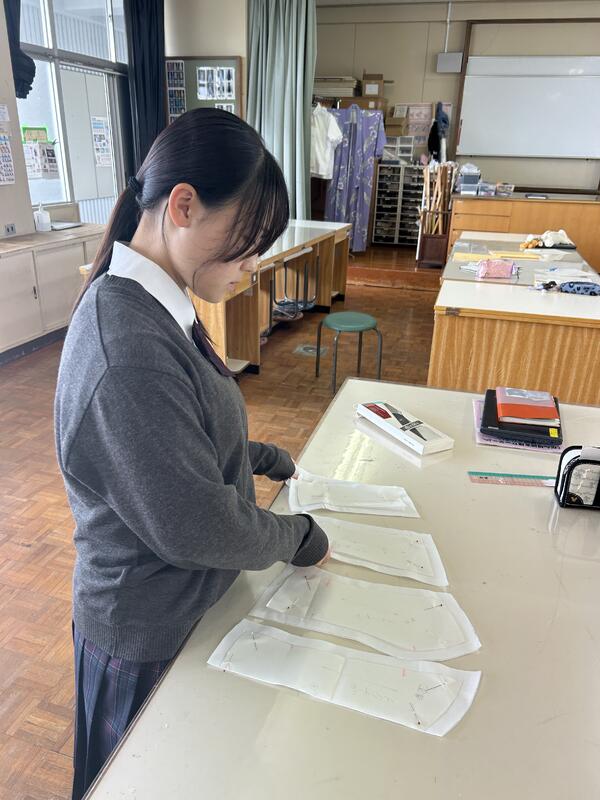 家政科3年生は12月21日(土)・22日(日)に家庭科技術検定・被服(洋服)で1級取得に挑戦します現在、検定に向けてジャケットを製作中です