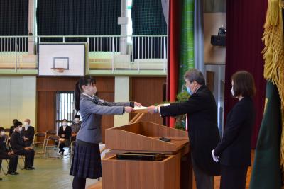 卒業証書授与式が挙行されました。99名の3年生が卒業していきます。