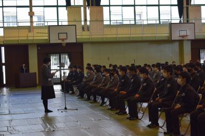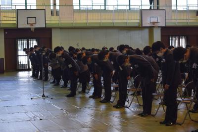 最後は全員体育館にそろって校長訓話、校歌を聴き各部連絡、学年集会、LHRで終了です。
