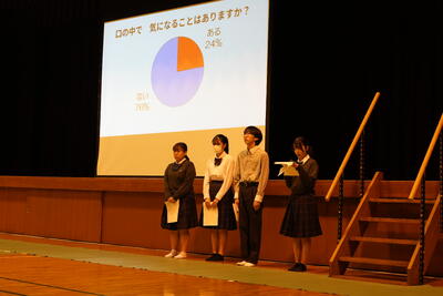 家政科1年生による今年度の「レシピの提案」と情報処理科3年生による「松高フードコート~2年目の”カイゼン”~」の発表が生産者さまをお招きして実施されましたハート