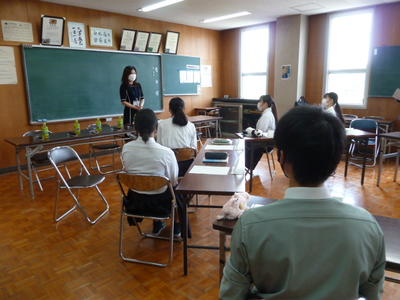 ジョブカフェ・宇城ブランチの村山様を講師にお迎えし、グループディスカッションの