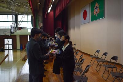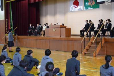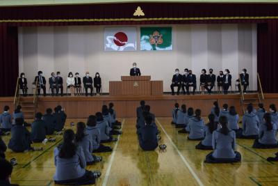 令和2年度 転退任式 投稿日時 : 2021/03/30 学校サイト管理者 令和2年度転退任式がありました。 この度の定期異動に伴い、本校から18名の先生方が、退職・転任されます。 転退任される先生方を代表し、三浦教頭先生からの挨拶、生徒会長の松本さんからの挨拶 および生徒会より花束贈呈もありました。新天地でもお体に気をつけて頑張ってください。 Tweet {{options.likeCount}} {{options.likeCount}} {{options.unlikeCount}} {{options.unlikeCount}} 0 コメント