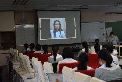 進学希望者と就職希望者に分かれ、卒業生が事前に撮影し送ってもらった映像を見ました。