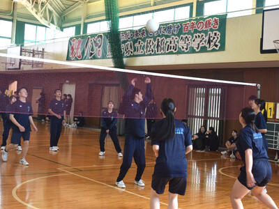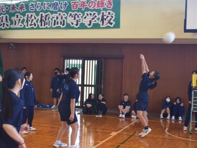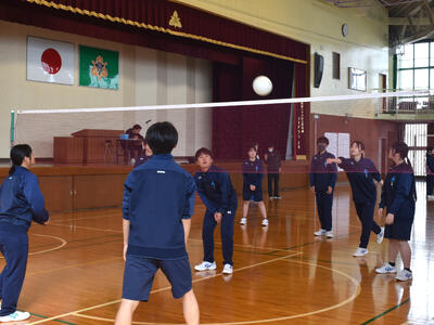 クラスマッチでミニバレーボールを実施しました各チームが協力し合いながら試合に臨み、仲間と声を掛け合う姿や、得点に喜ぶ様子が見られ、会場は大いに盛り上がりました