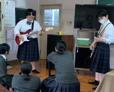 今年から同好会としてボーカル・エレキギター・ベースギター・キーボード・ドラムなどの編成で活動を行っています。部員全員で好きな曲や弾いてみたい曲の案を出し合い、曲決めを行い、松高フェスタ(カルチャー部門)や校内ライブなどで発表します。
