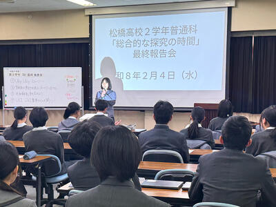 普通科2年生が、これまで取り組んできた課題研究の成果を発表しました先生方や外部の方からのアドバイスを生かした研究内容を発表し、学びを振り返りました